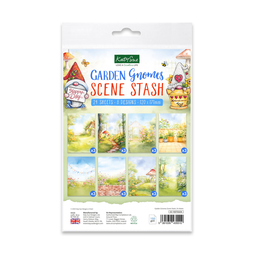 Bring your garden-themed cardmaking to life with the Garden Gnomes Scene Stash. This enchanting papercraft pack includes 24 beautifully illustrated backgrounds (8 unique designs, 3 of each), giving you plenty of choice when creating handmade cards full of charm and character.