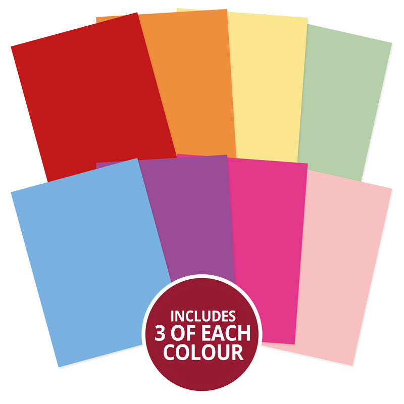 You’ll get 3 each of 8 different colours which perfectly compliment the rest of the A Rainbow of Flowers collection and at 350gsm; it is the perfect base for your projects.