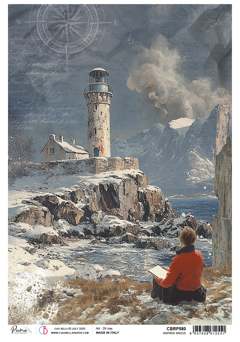 An Artist Journey, Inspiration on Northern Winds. An Artist Journey evokes the solitary path of an artist seeking inspiration along the rugged coasts of Northern Europe. Majestic fjords, shifting skies and quiet villages transform into sketches, colours and memories. The soul of this collection. Its palette reflects the stark beauty of the North: deep ocean blues, the crisp whites and ivories of morning light, and the warm red of Norwegian wooden houses, scattered like safe havens across the landscape. Every element recalls a step of the journey. Fleeting sketches, diary fragments, textures of raw canvas and weathered paper. Whether outdoors among rocks and waves, or in the silence of the atelier, creativity becomes a voyage of introspection and transformation.