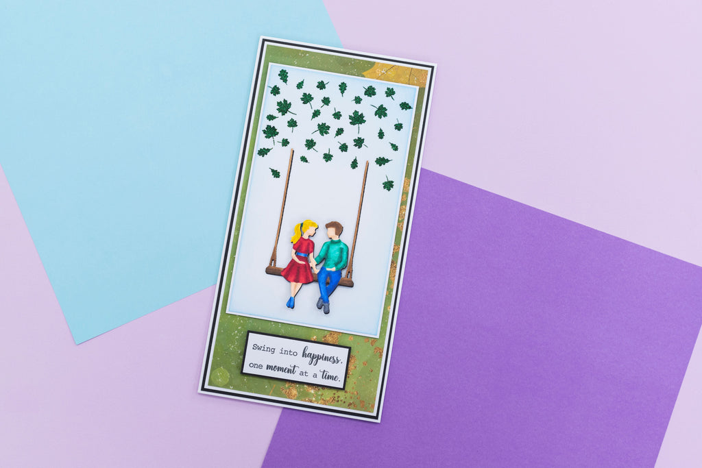 Give your homemade papercraft projects a loving look with the Swing into Happiness Metal Die, Stamp & Stencil Set by Crafter’s Companion. Included in this set is everything you need to create a man and a woman sat on a swing together in harmony.