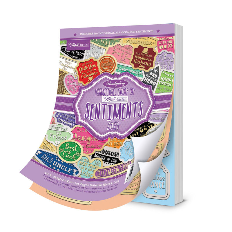 For all those memorable moments and special occasions throughout the year, you'll need Hunkydory's Essential Book of Matt-tastic Sentiments 2024. This crafting must-have features a jaw-dropping 620 individual foiled and die-cut shaped sentiments, ready to be popped out and added to your project.