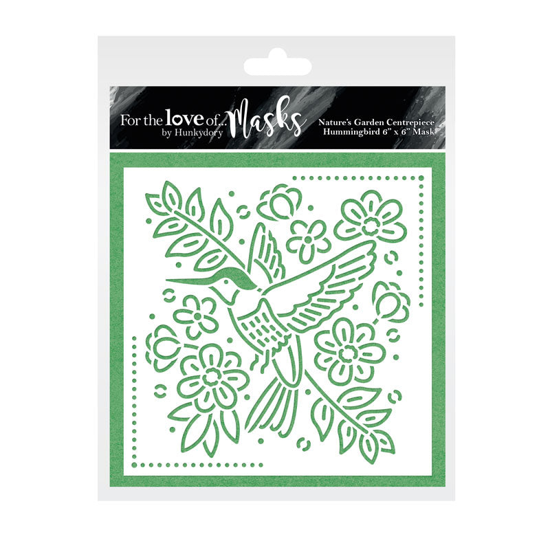 The Hummingbird 6” x 6” centrepiece mask includes a large hummingbird in flight surrounded by florals, foliage and stylised details along with two dotty corners. Ink through the mask using Prism Ink Pads for an instant card front or ink through sections for individual embellishments. Ink multiple, trim and layer for added dimension and use different finishing techniques such as embossing powders, Glimmer Mists and more! Why not use Prism Brush Markers and draw through the sections using the fine liner, allowing you to colour each individual section in multiple colours with ease.