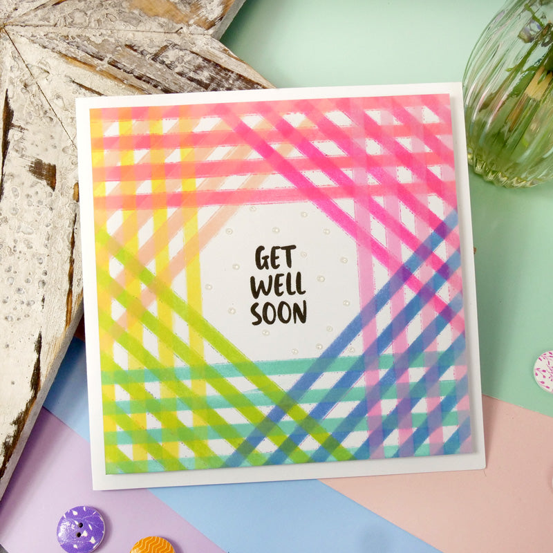 The For the Love of Masks - Ink & Twist - Gingham 6” x 6” mask will create an iconic gingham style pattern, perfect for your card fronts, and will work for a variety of themes and occasions. The mylar mask will ink the perfect background for a 6” x 6” card blank or why not try tiling the pattern to create backgrounds for larger cards or crafty projects?