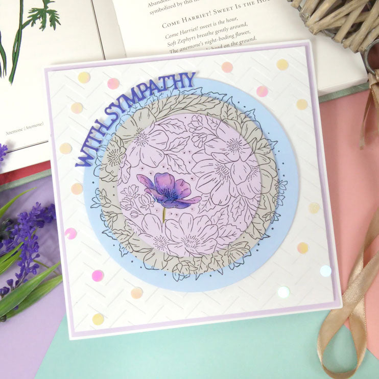 The For the Love of Stamps - A Circle of Anemones 5” x 5” stamp set includes a gorgeous arrangement of anemones, leaves and dainty flowers. Adorn the artwork with the 4 additional individual anemone stamps or use these to embellish card corners, edges or backgrounds. Pair with the range of Prism colouring mediums for beautiful bright images.