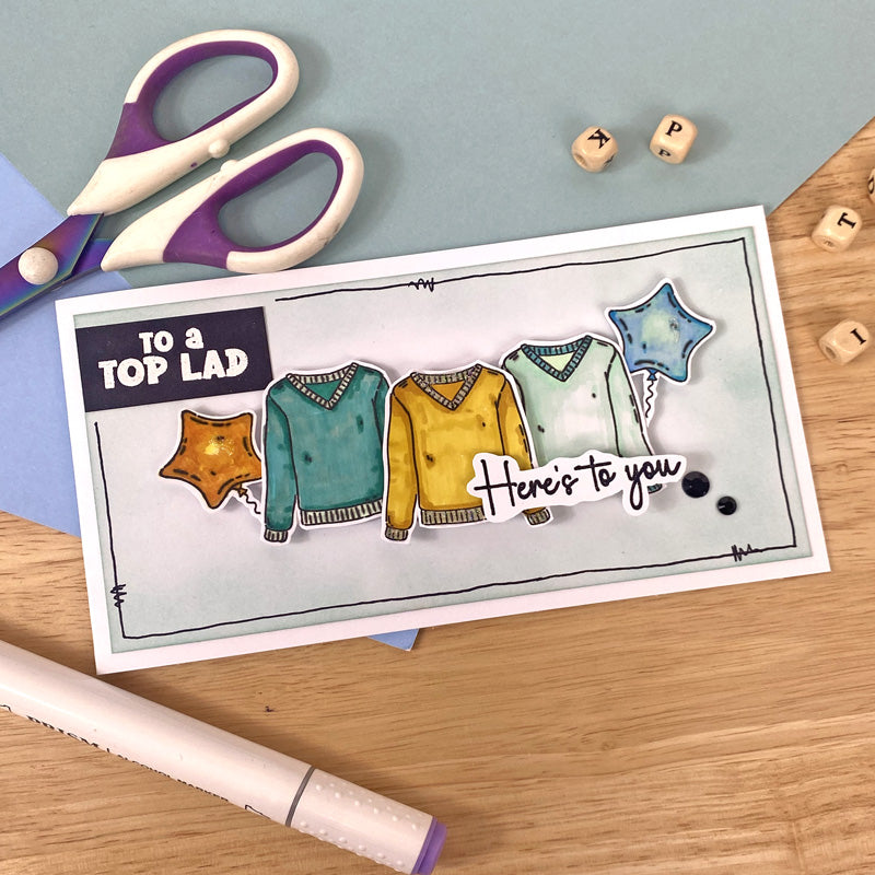 Add special sentiments to your crafty creations with the three sentiment stamps featured on the set, these read 'It’s a boy!', 'To a top lad', 'Here’s to you' and 'To the birthday boy'.