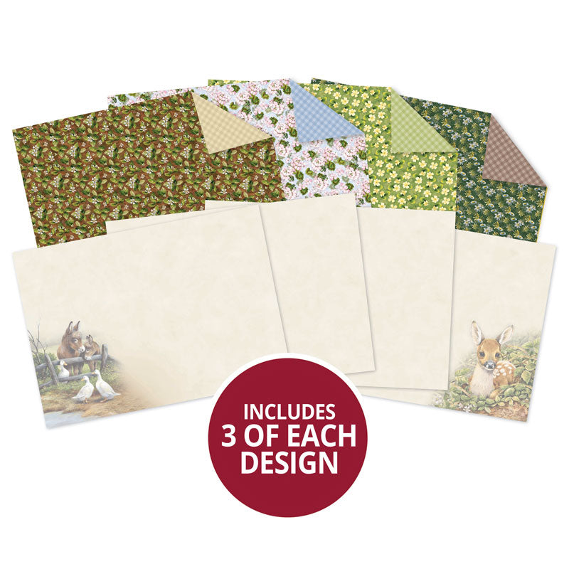 There are also 3 each of 4 different double-sided paper designs using complimenting colours, patterns and textures. They include various all-over floral designs on the fronts, each with a complimentary cheerful gingham pattern on the reverse, perfect for the countryside theme. Each sheet reflects the warming natural colour palette from the main Luxury Topper Collection. The double-sided papers are printed onto luxuriously heavyweight 150gsm matt paper, perfect for use as backgrounds, matting and layering, paper folding and so much more.