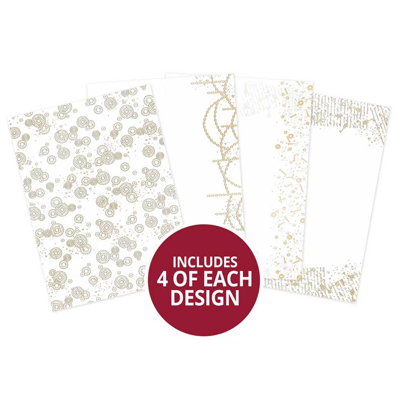 The Animal Arcadia Luxury Foiled Acetate features 4 different designs; an all over grunge cog pattern, decorative hanging chains, nuts and bolts border and rustic key borders. All in a gorgeous Rich Gold Foil that will overlay and complement the Animal Arcadia collection beautifully. The heavyweight 220 micron acetate has a variety of fantastic uses – make pretty windows for your cards, use to make sensational shaker cards, you can stamp on it or colour it with inks, use strips of it to make invisible stands for toppers and elements, and so much more! Our acetate is even strong enough to use as a card blank!