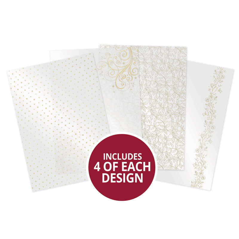 The A Whimsical World Luxury Foiled Acetate features 4 different designs; an edge-to-edge leaf pattern, a floral border, swirl corners and an all over sparkle design. Each sheet is beautifully foiled in Hunkydory's Rich Gold Foil which complements the Whimsical World collection beautifully.