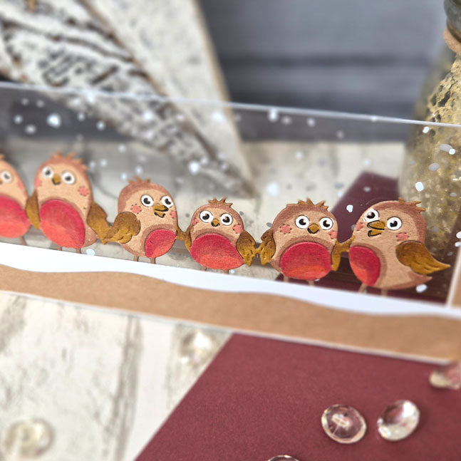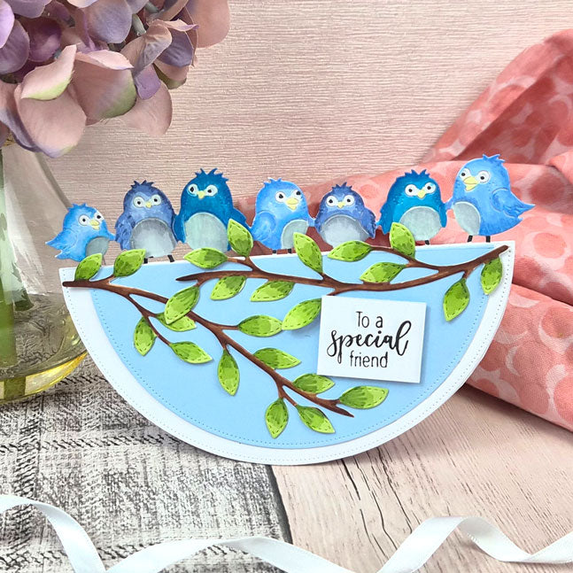 Cut stunning designs into the top edge of a 6” wide piece of cardstock for beautiful panels and even into card blanks for shaped card edges. Moonstone Dies - On-The-Edge - Rainbow & Birds includes two fabulous designs: the first design features a sweet sky scene of a sun and rainbow lined with a stitched cloudy edge and the other a cute row of birds perched on a line. Use the dies alone or try pairing them together to create unique scenes.
