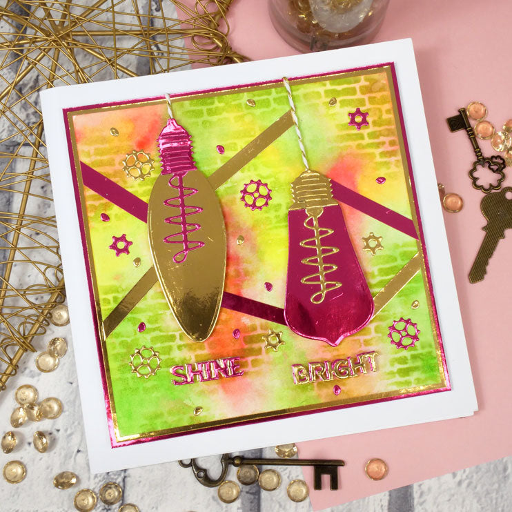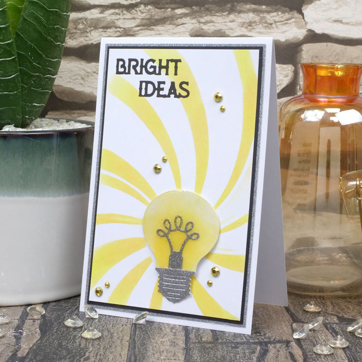 Mix and match elements from the Moonstone Dies - Shine Bright die set to create delightful lightbulb centrepieces or embellishments. Choose your bulb, filament and screw for a new unique lightbulb every time and pair with the individual word dies for striking cards and projects. The individual words can be put together to create inspiring sentiments for a variety of occasions.