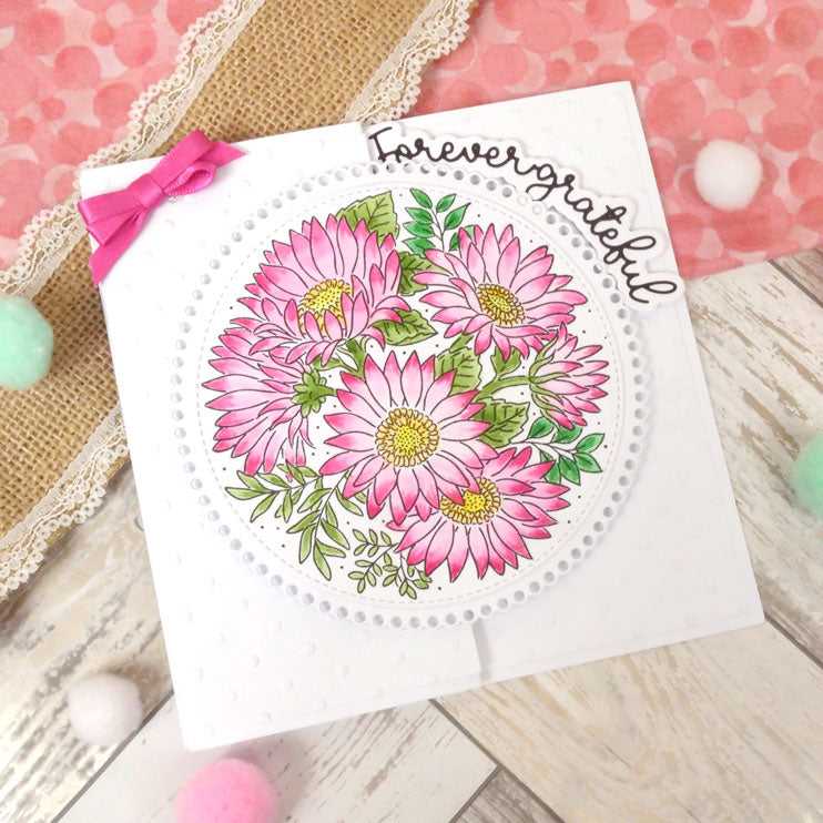 Create stunning arched sentiments with the Moonstone Dies - Essential Arched Sentiments die set. The set features 7 sentiments, either in a serif or script font, each with their own co-ordinating mat layer to create stunning dimensional sentiments. Each mat and sentiment co-ordinates with the largest circle on MSTONE050 - Straight Edged Nesting Dies - Circles (sold separately) to adorn the edge of circular centrepieces or apertures.