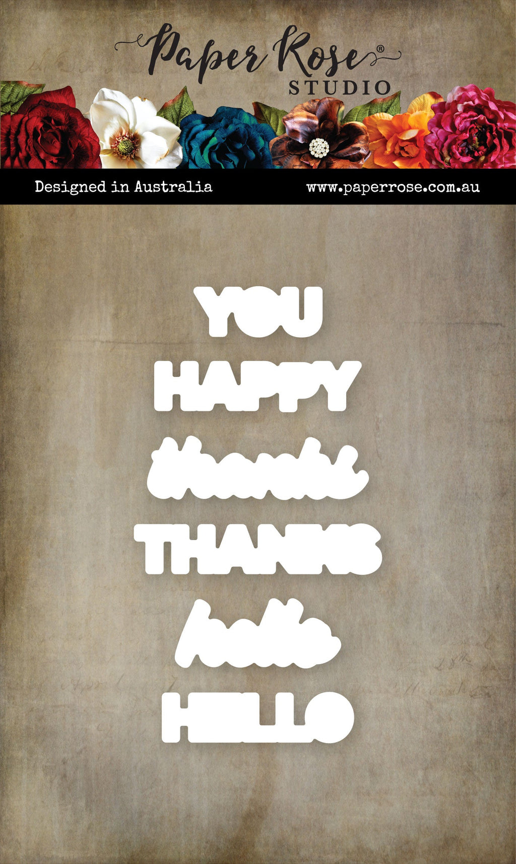 This die set is perfect for creating beautiful card designs that your friends and family will love. The set has 6 individual words dies including; 'you' and 'happy', plus 'thanks' and 'hello' in both script and upper case fonts.