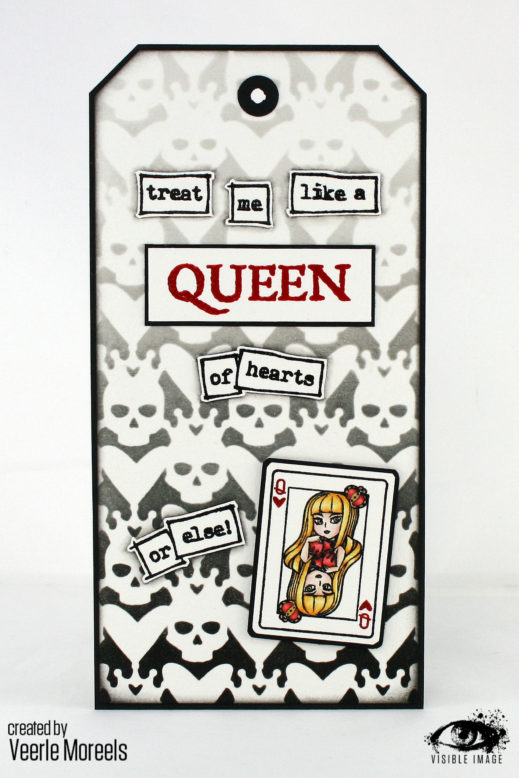 An awesome skull and hearts stencil which works so well with Alice in Wonderland stamps! Use it with inks, paints or texture paste. Measures: 6″ x 6″.