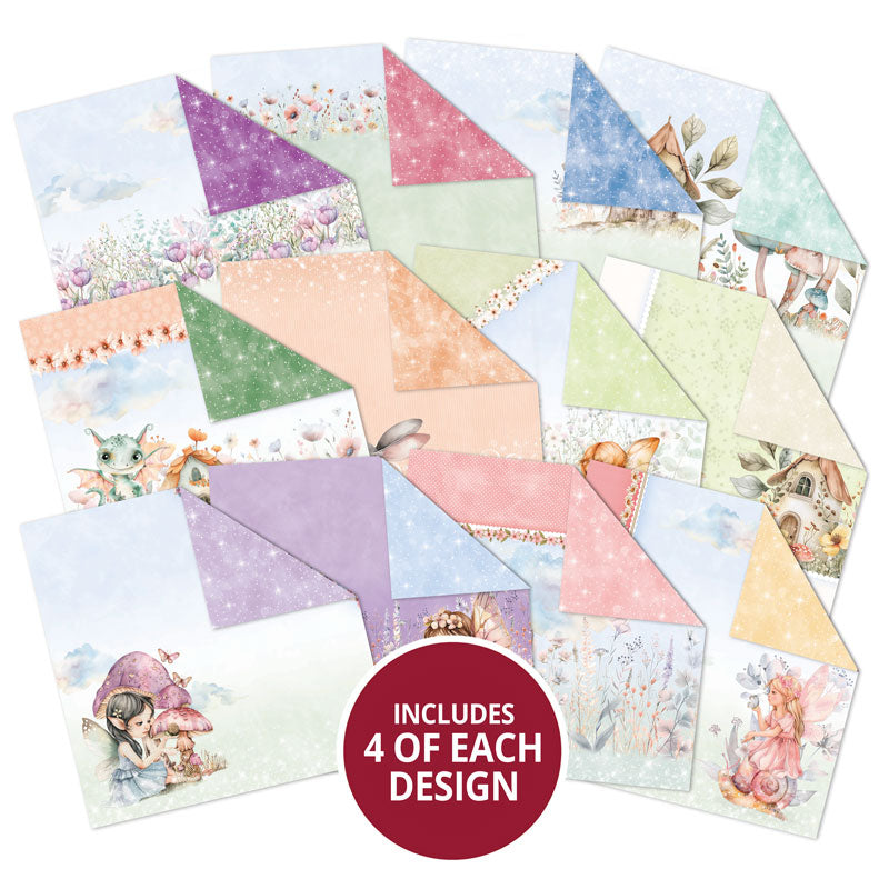 The pad is packed full of new fairies, dragons, and their curious friends while continuing with the same fresh colourways as the main collection meaning you can mix and match seamlessly between the pad & the toppers. Not only do you get the beautiful character artwork but there are also 4 different background designs perfect for creating scenes with the characters (the A Whimsical World Elements Topper Embellishment pack will work perfectly with these pages!). The reverse sides of the pages all feature a magical sparkly design in a range of colourways. This pad is the perfect extension to your main topper collection and such good value for its contents.
