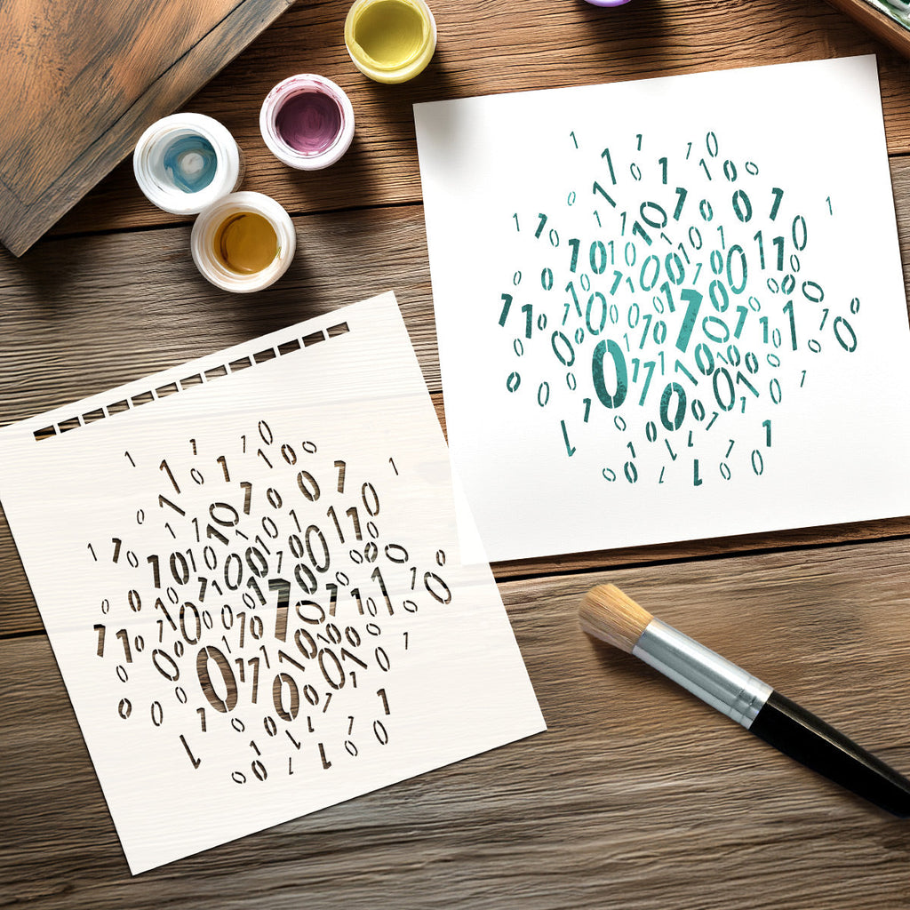 Explore texture, pattern and layered design with the Binary 8x8 Mixed Media Stencil by Andy Skinner for Cosmic Shimmer. Designed with mixed media artists and crafters in mind, this precision-cut stencil offers bold detail and endless creative potential. Whether you're crafting in journals, working on canvas, or making cards, the 8x8 inch design area offers generous coverage while remaining easy to handle and position. Made from highly durable 350 micron Mylar, our stencils are built for repeated use with your favourite craft mediums – from acrylic paints and texture pastes to sprays and inks. For easy storage, the stencil has pre-cut holes to fit most standard ring binder folders. Use with a domed stencil brush for crisp results, or experiment with blending tools and layering techniques to create unique background textures and focal elements. This stencil design pairs perfectly with Andy’s signature grungy, industrial style – discover more of Andy Skinner’s designs for Cosmic Shimmer. Whether you're a seasoned artist or just starting out, Cosmic Shimmer stencils help you add depth, drama and artistic energy to any project.