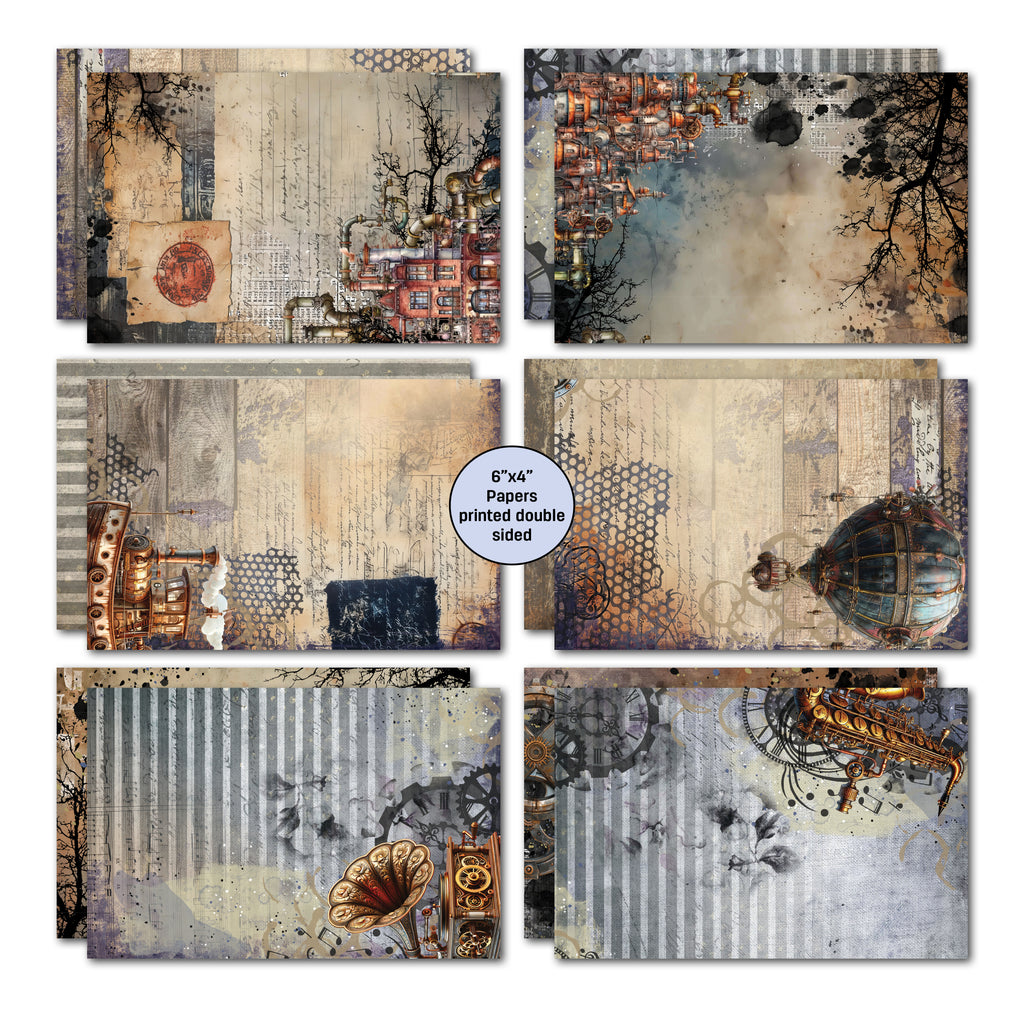 A beautiful grungy collection with a seamless supply of neutral colours. Supplied with some steampunk themed embellishments and lots of fussy cutting elements. This collection has a great vintage feel.