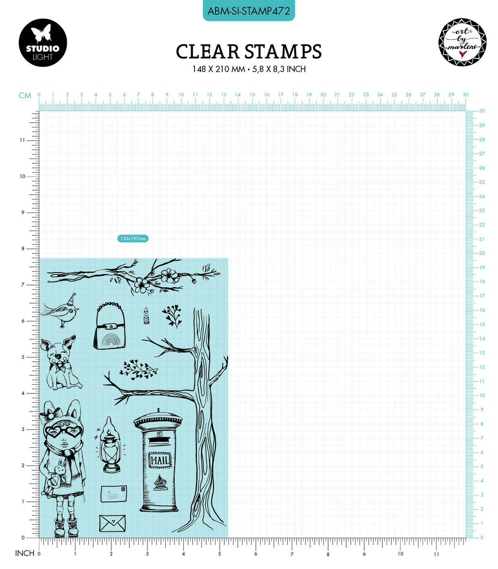 This clear stamp set has an array of elements ideal for adding images to any project. Featuring a tree and branches, a mailbox, mail, a girl, a dog, a bird plus some extra elements to finish off your projects. Perfect for making beautiful and unique cards and paper crafts. Make every project special with this must-have stamp set. Part of Art By Marlene's Signature Collection.