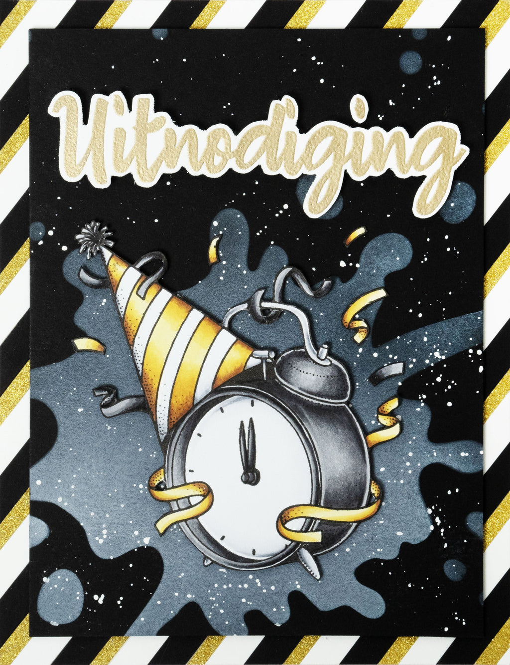 This single clear stamp set is perfect for Birthday themed projects. The stamp has an image of an alarm clock wearing a party hat and surrounded by confetti. Perfect for scrapbooking, journaling and card making. Illustrated by Laurens van Gurp.