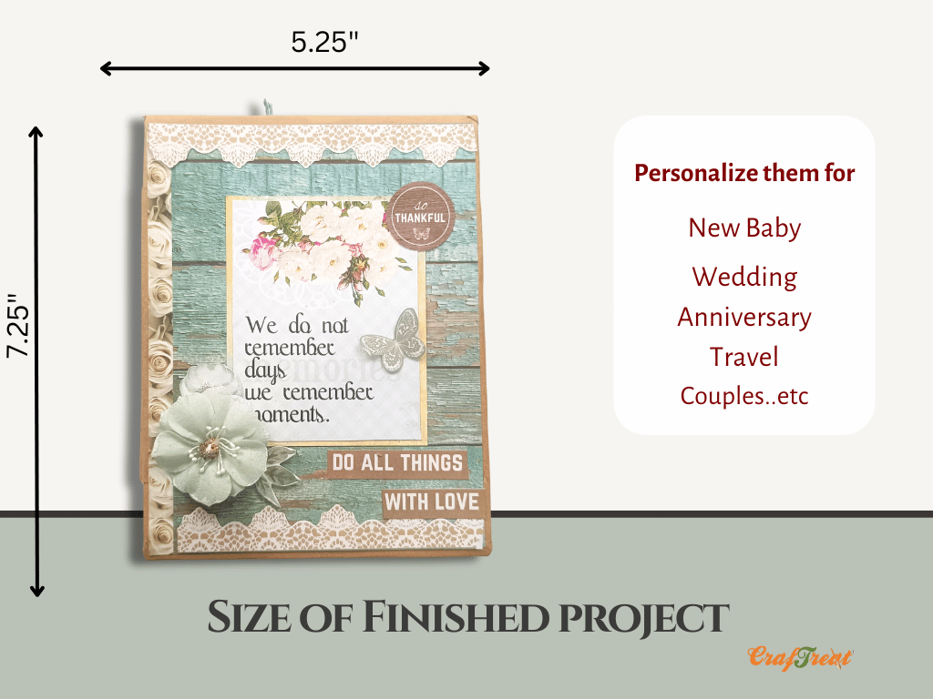 CrafTreat Accordion Hinge Book 1 White. Make Beautiful Scrapbooks Effortlessly! Designed for strength and flexibility, this book features an accordion-style hinge system that allows multiple pages to open and close smoothly  Looking to dive into scrapbooking without the stress of cutting, scoring, and assembling? Our Junk Journal Scrapbooking Kit makes 1 album and makes the process easy and fun! Save time and focus on the creative side, personalizing your scrapbook albums with any theme you love—whether it’s for a couple, baby, wedding, birthday, anniversary or vacation scrapbook.
