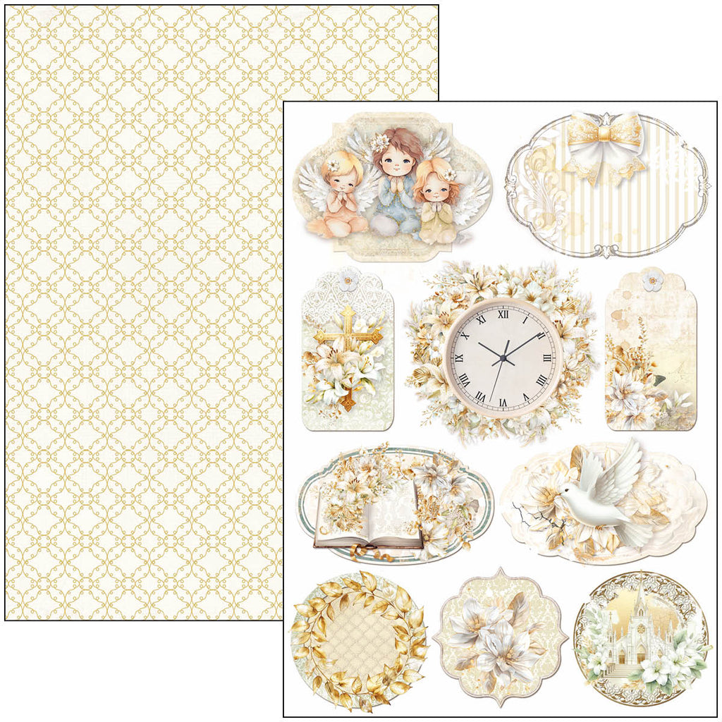 An atmosphere of sweetness and purity surrounds the Blessing Day collection, a tribute to serenity and spirituality. With delicate ivory tones, golden details, and refined floral motifs, these illustrations evoke a sense of peace and harmony. Gentle angels, enchanting churches, and ethereal flowers intertwine in elegant and luminous compositions, perfect for celebrating life’s most precious moments. Every element is designed to convey love, hope, and blessings, making this collection ideal for delicate and meaningful creations.