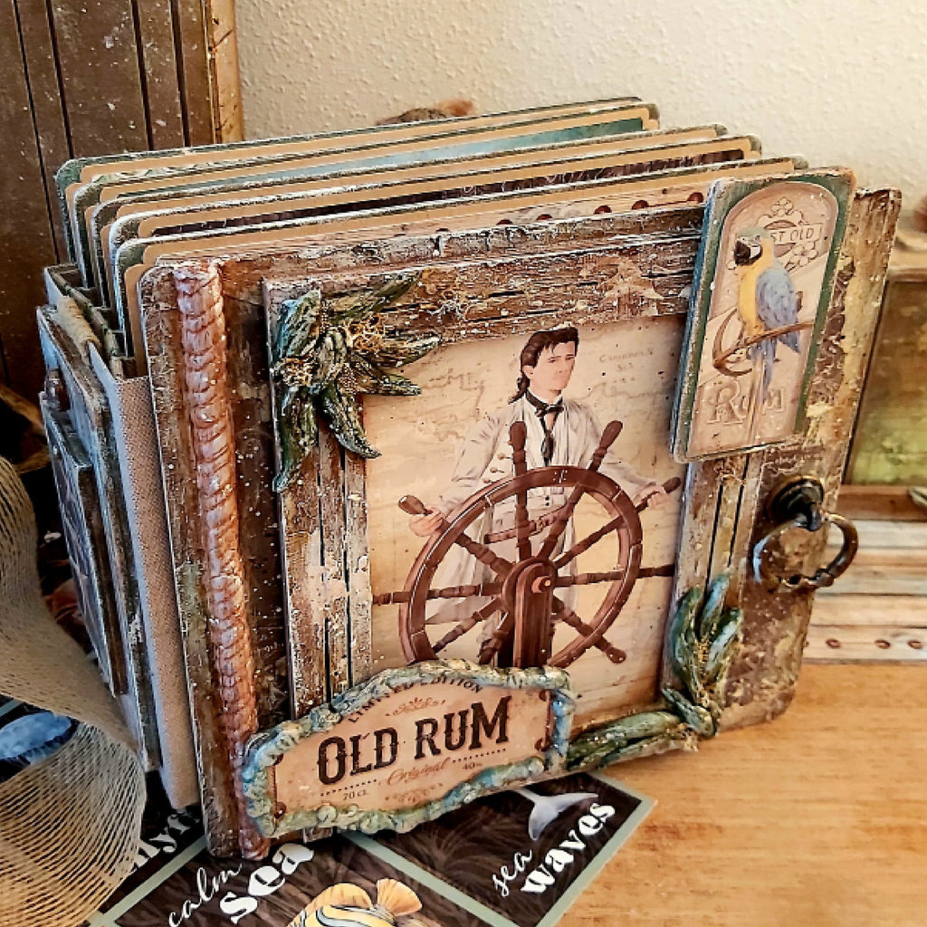 The paper pad includes images of a mermaid, a sea captain, parrots, whales, dolphins, seahorses, jellyfish, sea lions and other marine life and also contains images associated with vintage sailing ships.