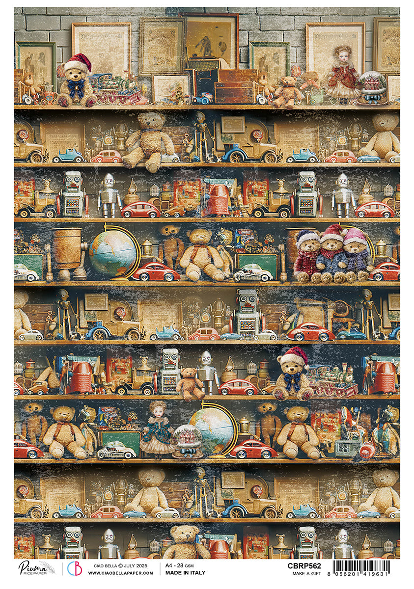 Step into a charming world where time stands still, and the magic of childhood comes alive through the warmth of vintage toys and nostalgic shop windows. “Toy Shop” brings to life the cozy, whimsical atmosphere of an old-fashioned toy store, filled with treasures that echo the joy and innocence of years gone by. The collection’s rich colors – deep bordeaux, serene blue, and soft ivory – create a timeless palette that mirrors the elegance of antique toys and the quaint charm of the shops they come from. Each piece is a tribute to the simple pleasures of childhood, evoking memories of the past while inspiring new ones. Let yourself be transported to a world where every toy tells a story, and every corner of the shop sparkles with festive cheer.