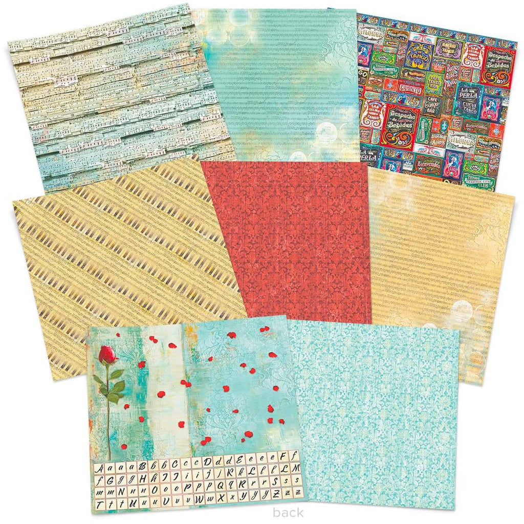 - 1 each of 8 double-sided printed papers; includes a couple dancing, floral images, guitars, piano keys and music notes