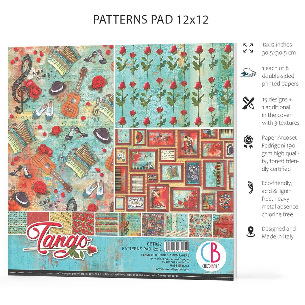 Ciao Bella Tango Patterns Pad 12"x12" 8/Pkg