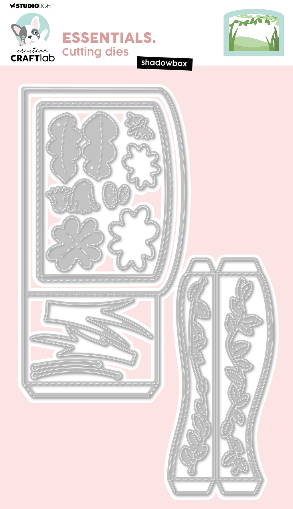 Unlock your creativity with this cutting die set and create a beautiful shadowbox. The set includes everything you need to build a shadowbox plus extra floral elements to finish off your project. Perfect for one-of-a-kind cards and paper craft projects. Part of the Creative Craft Lab Essentials collection. 14 pcs