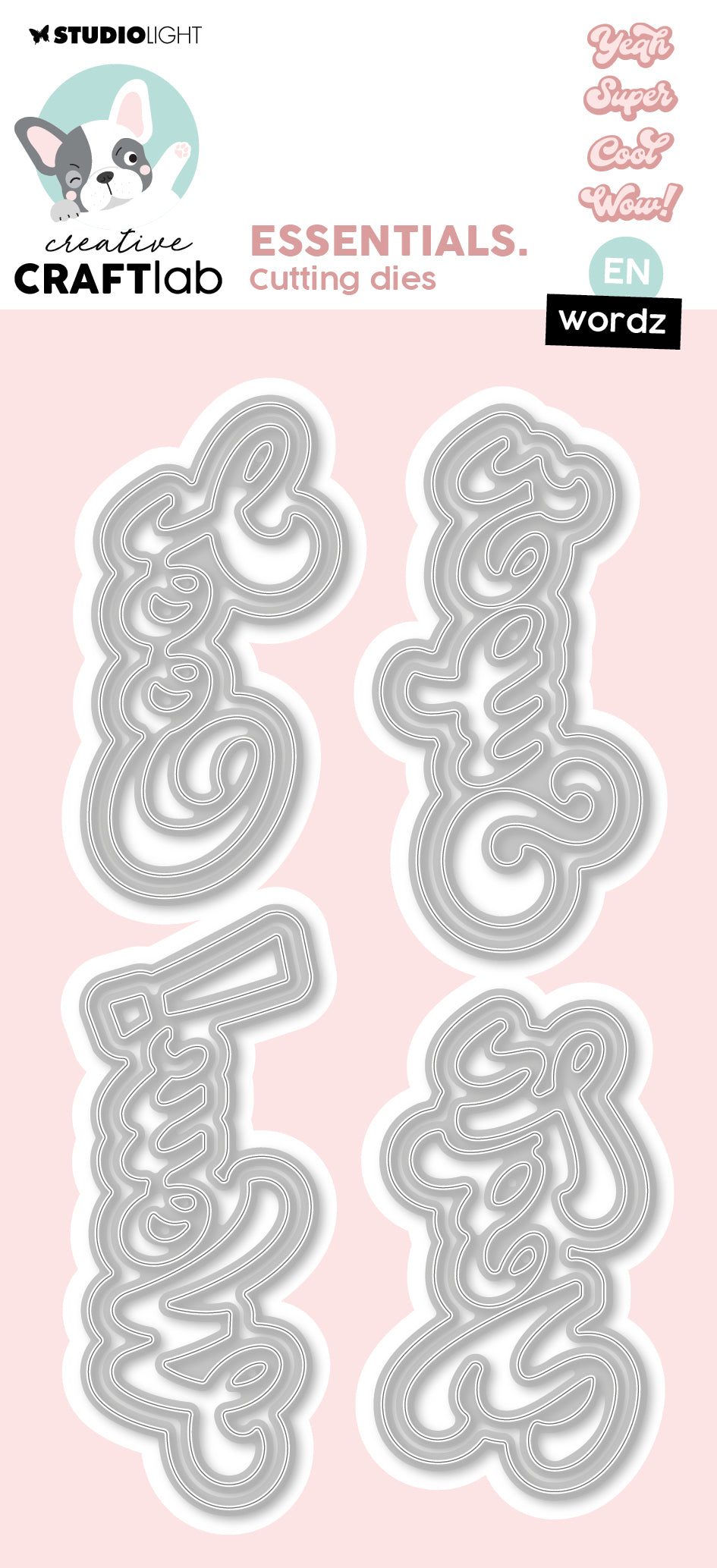 This set includes 4 different words 'Yeah', 'Cool, 'Super', and 'Wow'. This set also includes an outline die for each word. Perfect for any occasion. This set will make a great addition to cards, scrapbook layouts and journal pages.