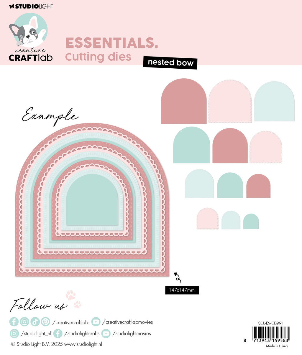 This cutting die set creates curved frames that can be nested or used individually. Perfect for one-of-a-kind cards and paper craft projects. Part of the Creative Craft Lab Essentials collection. 12 pcs