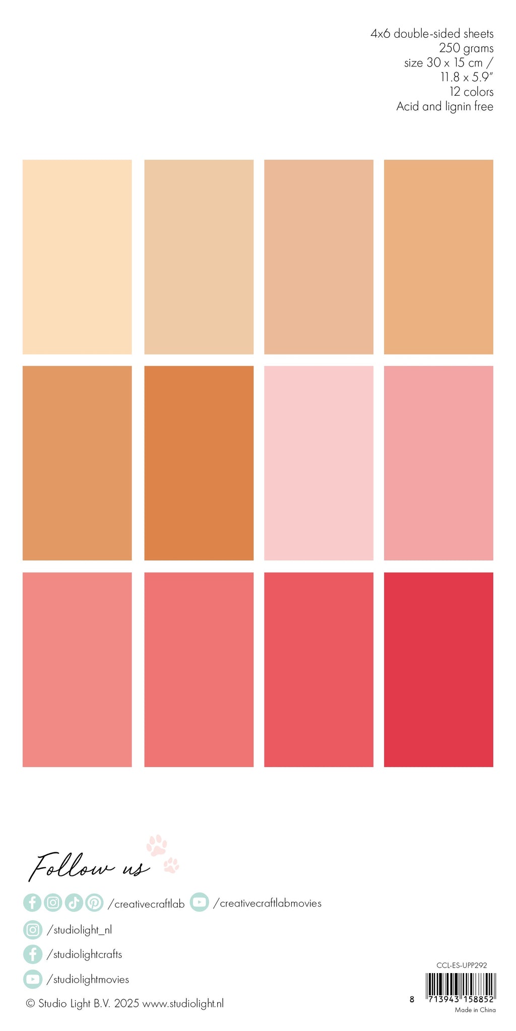 This paper set includes 4x 6 double-sided sheets with 12 colours, 250gsm, acid free paper. Perfect for cards, scrapbook layouts and journal pages. Part of the Creative Craft Lab Essentials collection.