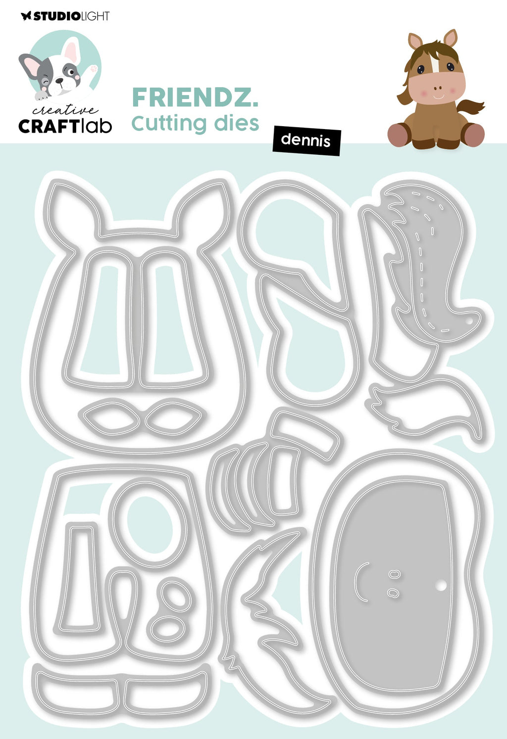 This cutting die set includes everything you need to build an adorable horse named Dennis. This set will make a great addition to cards, scrapbook layouts and journal pages. Part of the Creative Craft Lab Friendz collection. 14 pcs