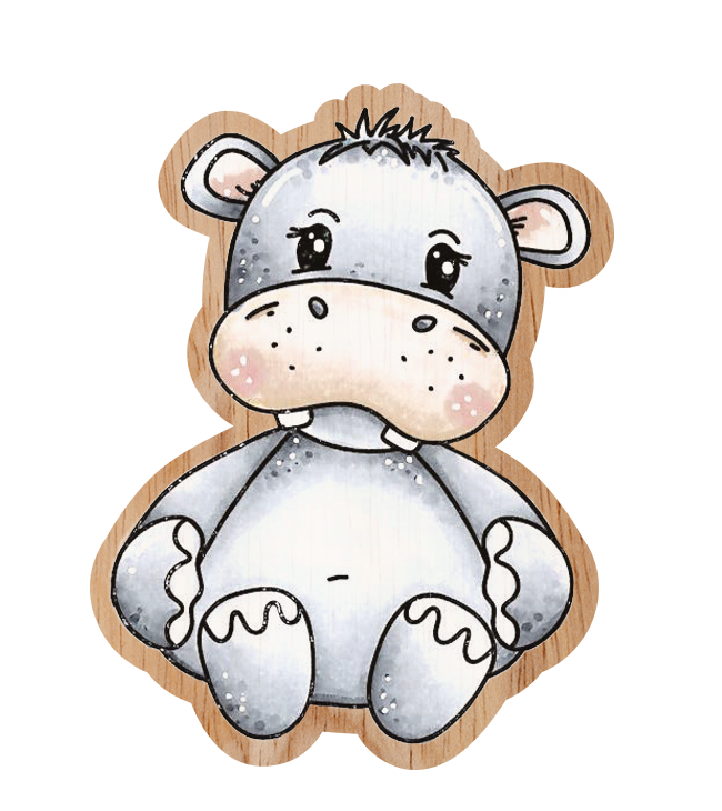 A rubber stamp mounted on wood with an image of an adorable hippopotamus. Great for scrapbooking, journaling and card making.