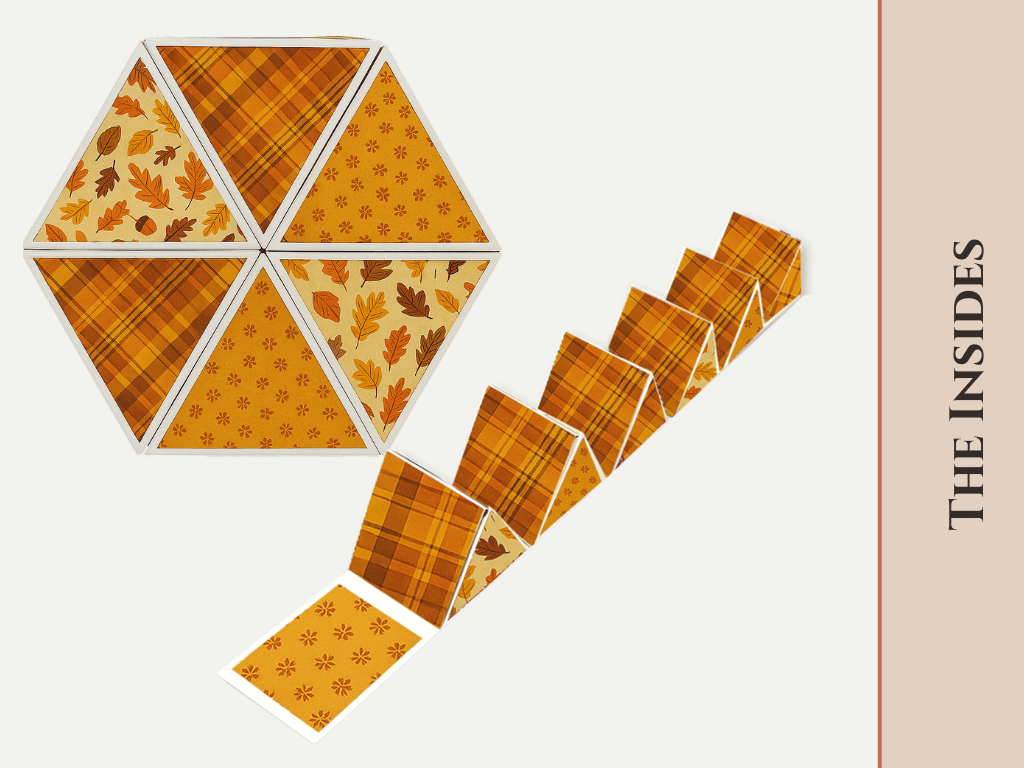 Size 5.25". Make your gifting extra special with our Roll-Up Hexagon Box! This unique foldable box opens up layer by layer to reveal a beautiful hexagon-shaped surprise inside. Its clever roll-up design makes it both decorative and functional – perfect for storing small keepsakes, chocolates, jewelry, or as a creative gift box.