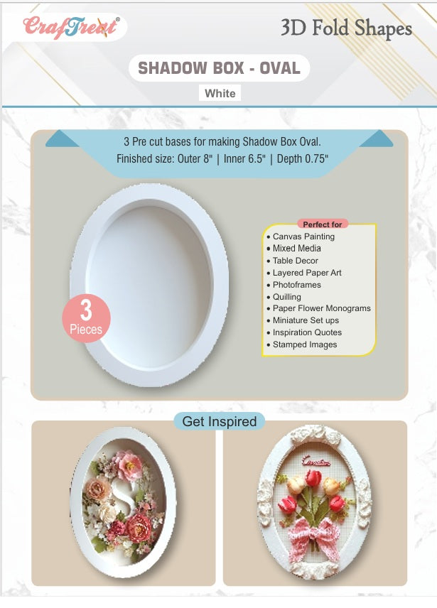 CrafTreat 3D Fold Shapes - Shadow Box White - Oval 3pcs