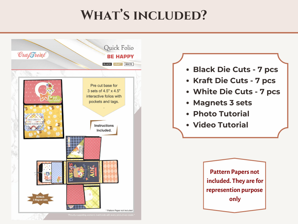 Create 3 stunning projects with 1 Quick Folio! Designed for crafters who love fast, fuss-free scrapbooking, this kit features easy-to-follow measurements and a simple layout system. Whether you're a beginner or a pro, you’ll enjoy assembling beautiful folios without the overwhelm. Perfect for gifts, memory keeping, or last-minute projects! Recommended Pattern Paper size: 6"x6" or 6"x8"