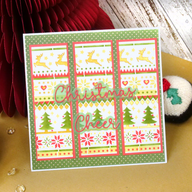 - Create fabulously festive colourful backgrounds for 5” x 5” cards