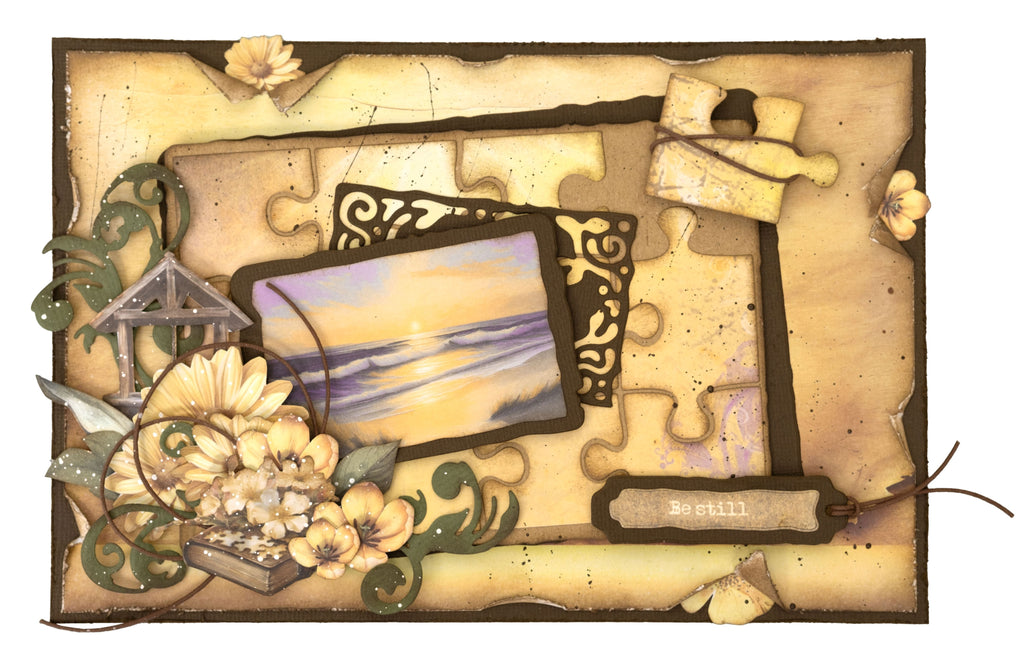This set can be used on cards, invitations, scrapbook pages or in other art projects. The set contains an array of elements including florals, puzzle pieces, as well as tag and label elements perfect to use as finishing touches to your projects. Make every project special with this must-have die set. Part of Jenine's Mindful Art Collection. 7 dies