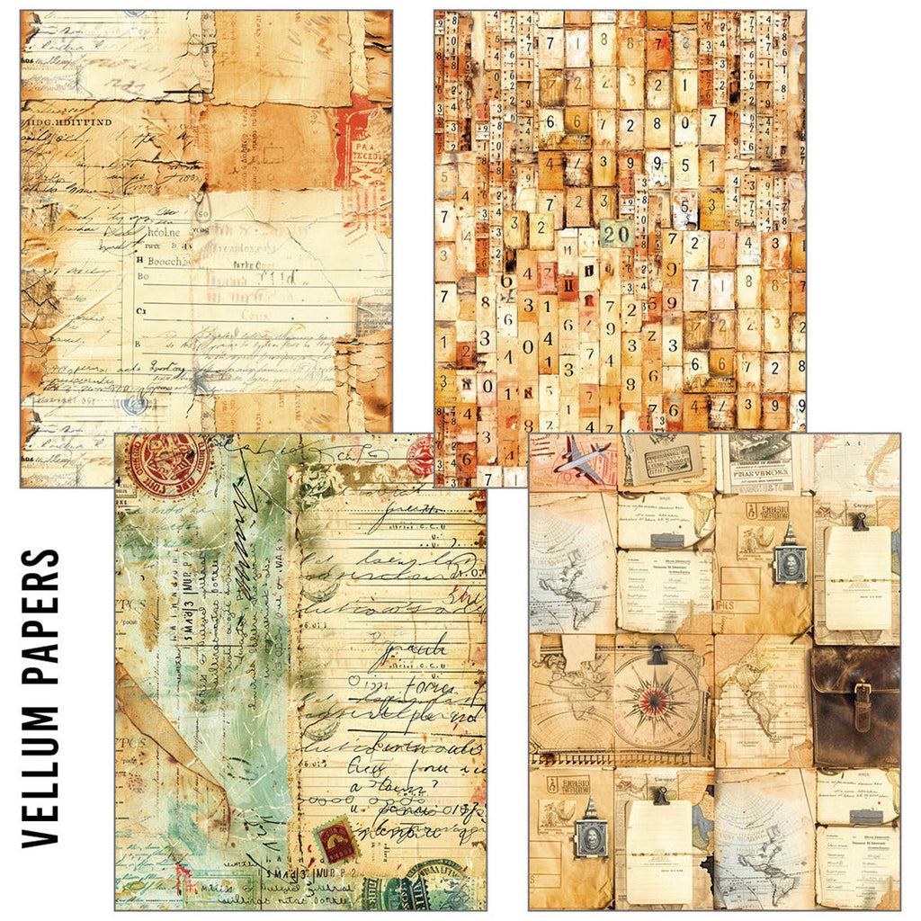 This mixed A5 paper pack includes 8 sheet, with 4 sheets of tissue paper and 4 sheets of vellum. Unleash your style with the vintage rustic textures and illustrations. Perfect for a variety of paper craft projects.