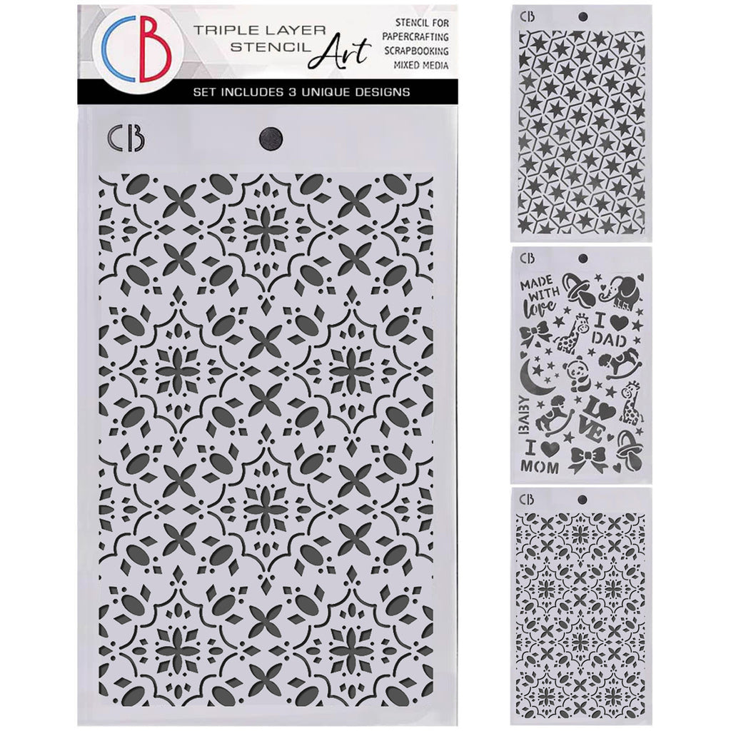 This set includes 3 individually designed stencils. These background stencils are perfect for paper crafting, scrapbooking and mixed media projects.