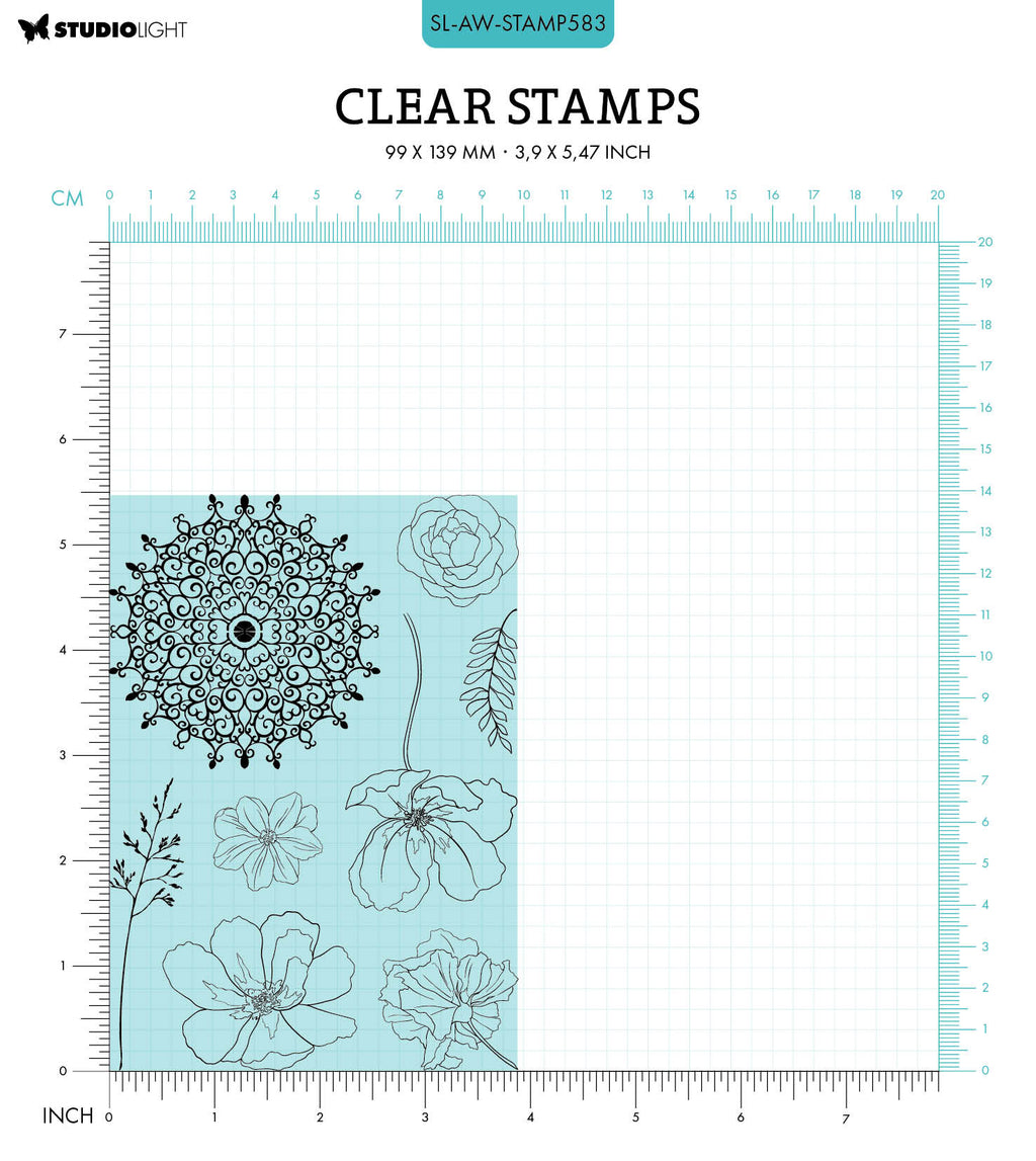 Studio Light Clear Stamps are made of polymer, which makes them soft, textured and easy to handle. By sticking them on a stamping block or stamping platform, they are immediately ready for use. Studio Light Stamps can be used with all types of ink stamp pads.