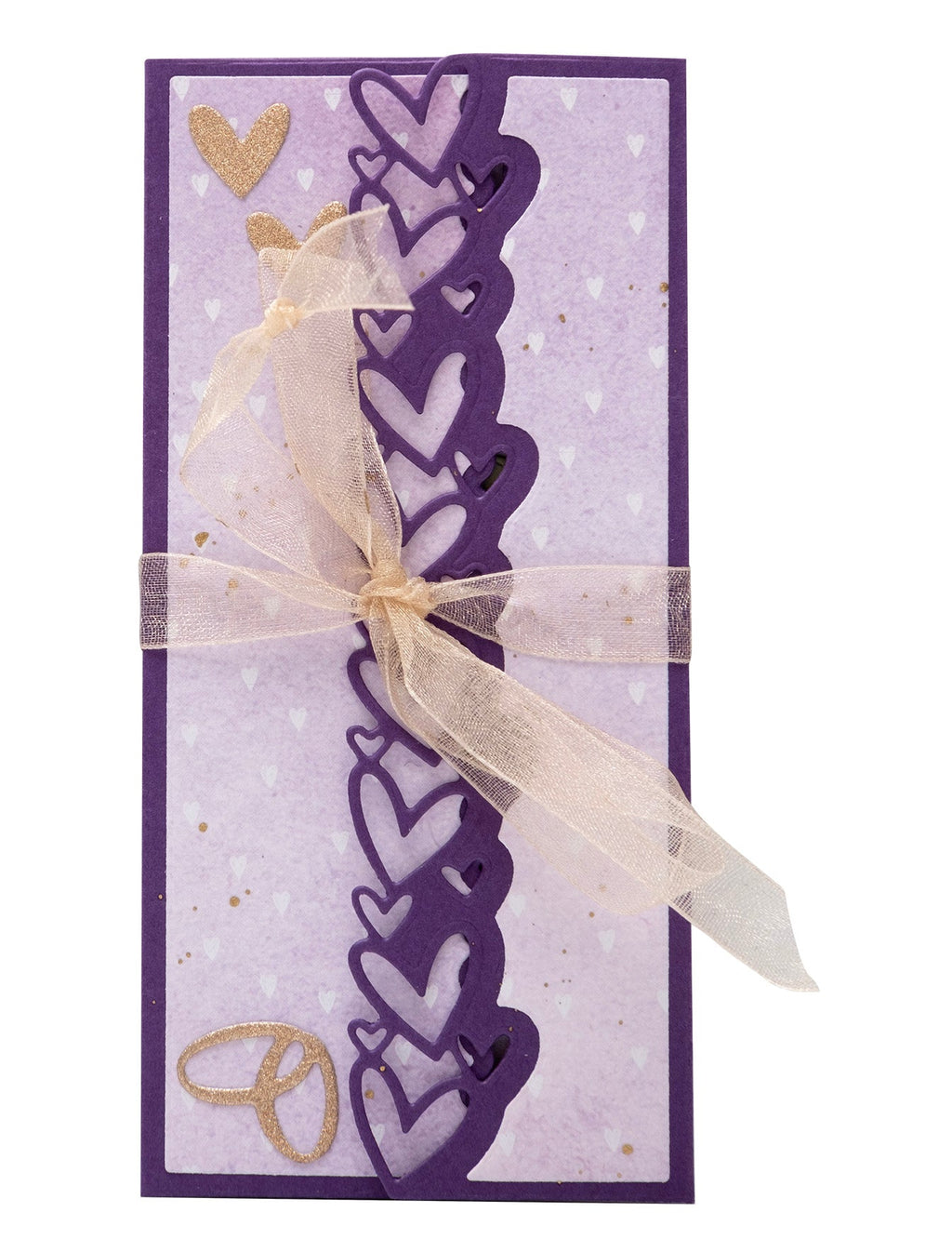 Create a unique envelop and card with this 6 piece die set. This handy set is a great addition to your crafting stash and is perfect for Wedding, Anniversary and Valentine themed projects.