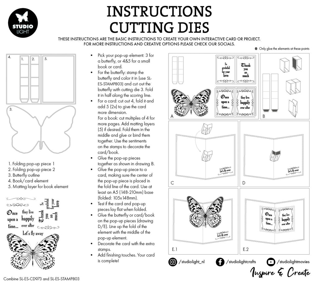 Create beautiful, intricate and interactive cards using this cutting die set which can feature a pop-up butterfly, a pop-up card or a pop-up book. Great for any occasion. Perfect for adding dimension to cards, scrapbooks, and other crafting projects. Upgrade your creations with ease and precision. 5 Piece Set.