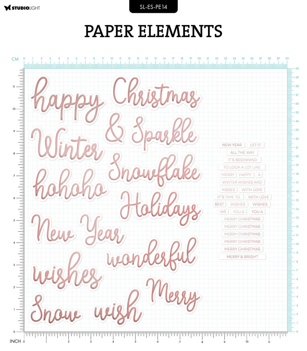 This unique paper elements set includes Christmas and Winter themed texts and quotes highlighted in rose gold foil. Great for your festive cards and paper craft projects.