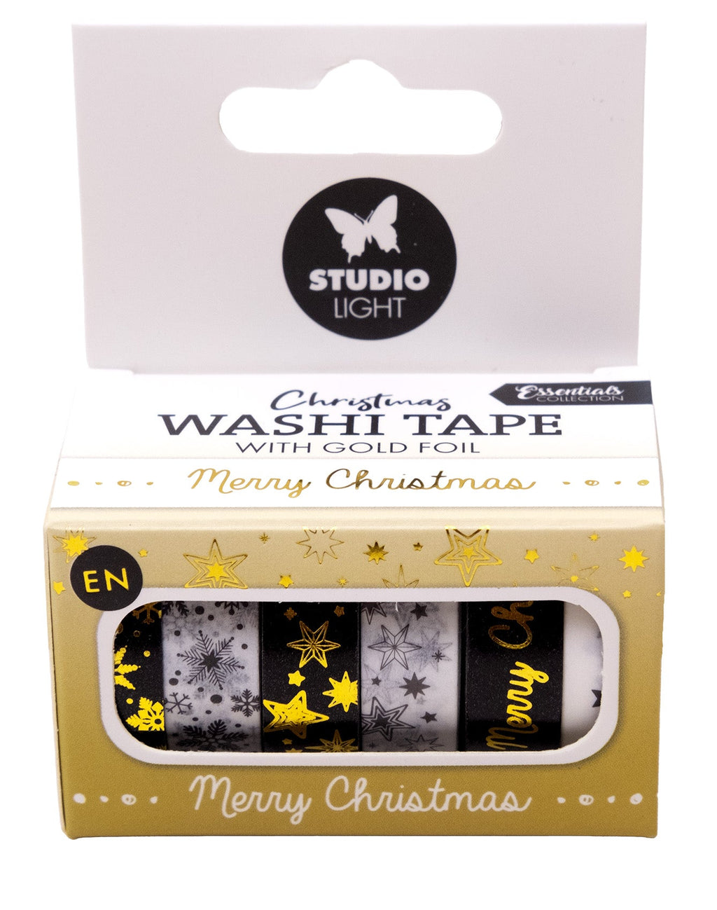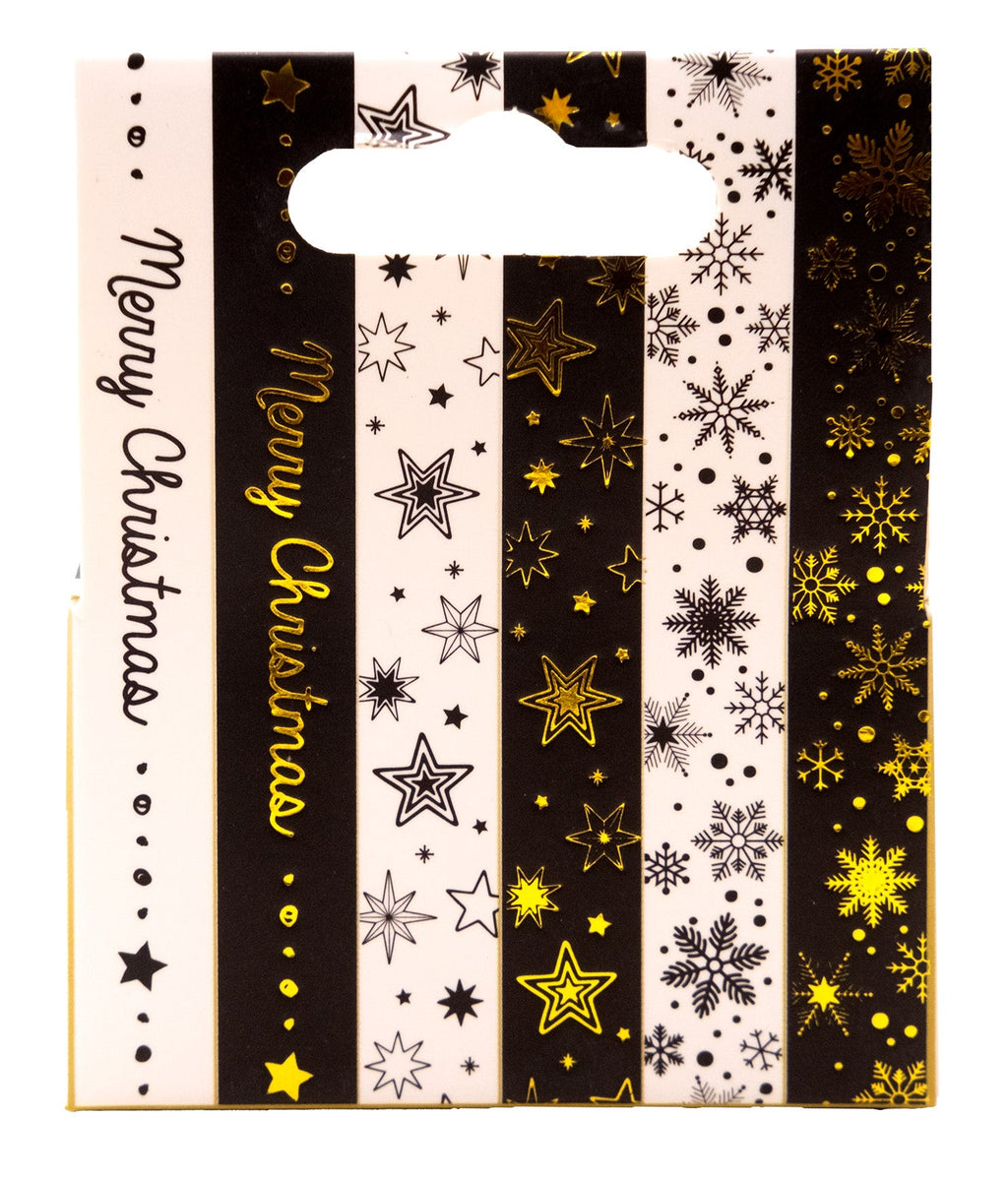 This set includes 6 rolls of Christmas and Winter themed washi tape. Includes 3 rolls in white and 3 rolls in black with gold foil accents. The tape is perfect for creating borders, layouts, adding accents or a splash of colour on your journaling pages, planners, cards, scrapbook pages, mixed media projects, envelopes, gifts and much more.